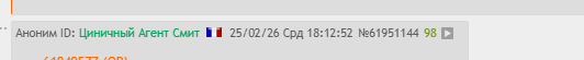 Аноним ID: Гордый Доктор Айболит25/02/26 Срд 15:46:42#4№61949612