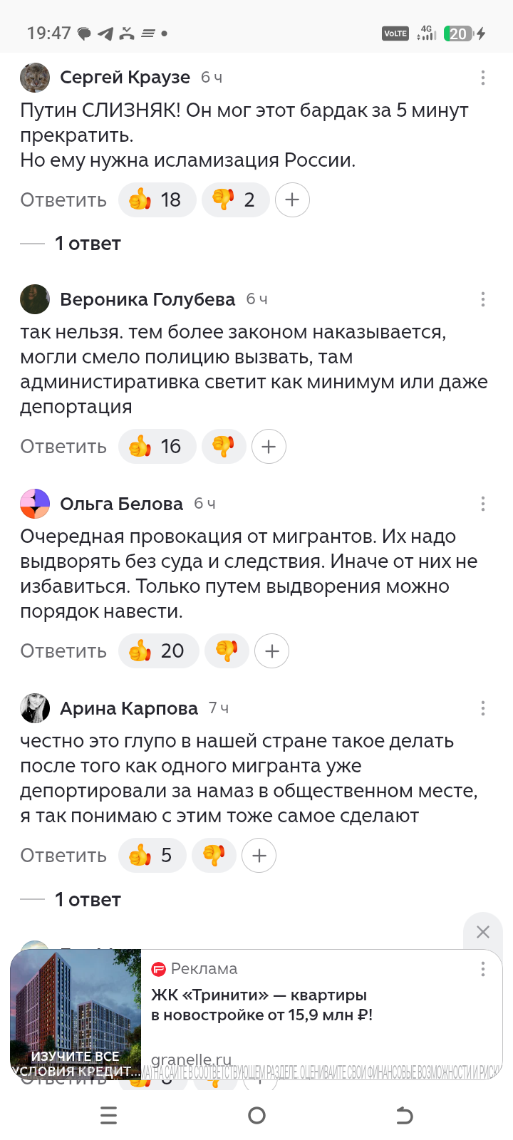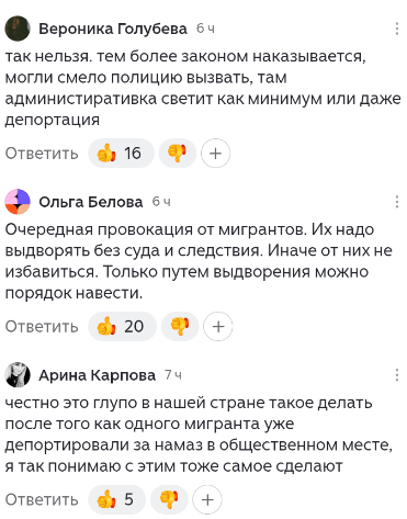 Я, как простая бабушка на пенсии, просто в шоке от того, что сейчас творится! Опять какой‑то случай с религиозным обрядом прямо посреди улицы попал на видео - и это в нашей России! Прямо в Москве! Там в сильный снегопад, когда на дорогах и так сложная обстановка, мусульманин решил намаз читать. Вышел, целую полосу перекрыл и давай молиться. А что, так можно было?! Ему и бибикали, и кричали, и на видео снимали – ноль эмоций.
