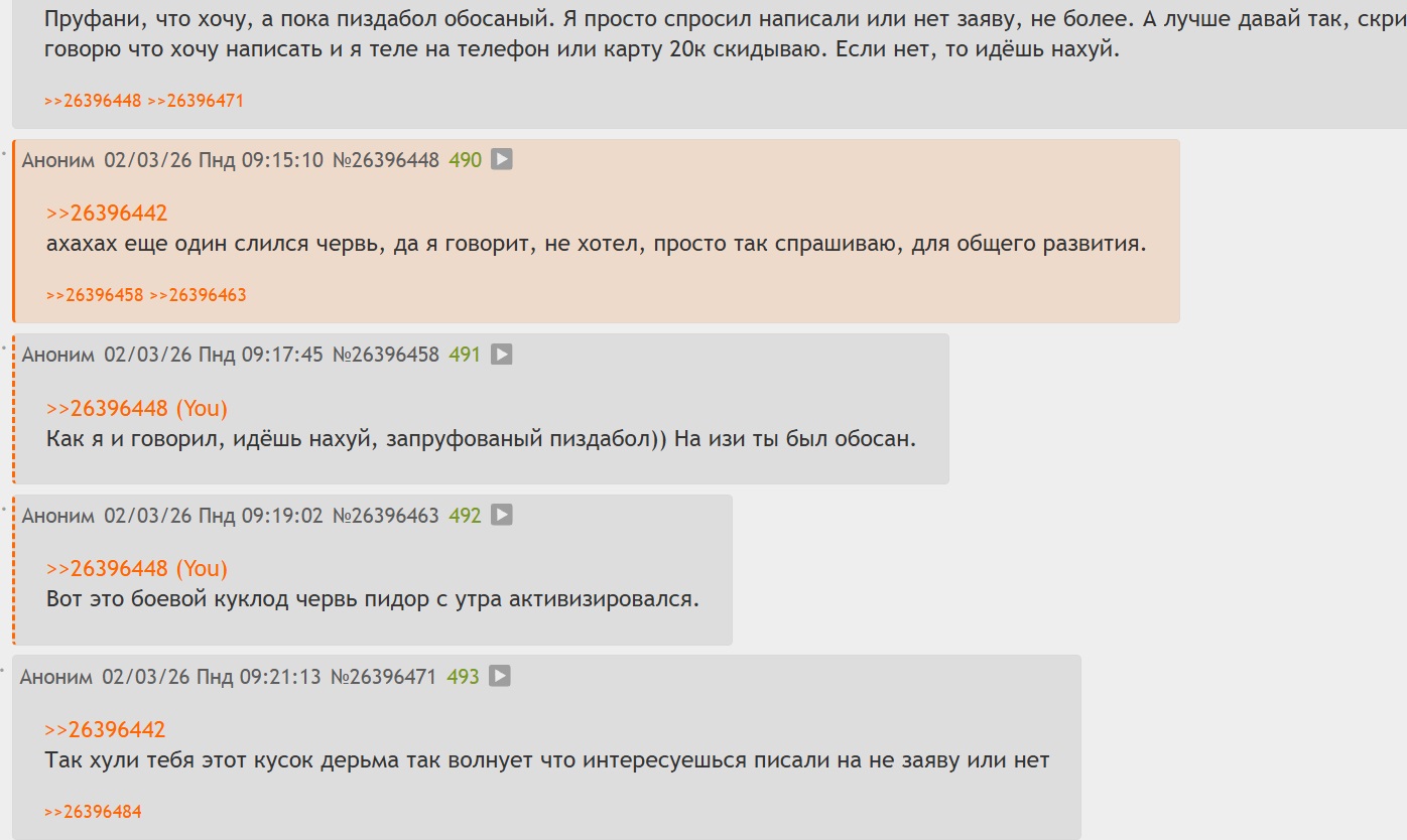 >>26396422 Пруфани, что хочу, а пока пиздабол обосаный. Я просто спросил написали или нет заяву, не более. А лучше давай так, скрин сюда кидай, где я говорю что хочу написать и я теле на телефон или карту 20к скидываю. Если нет, то идёшь нахуй.