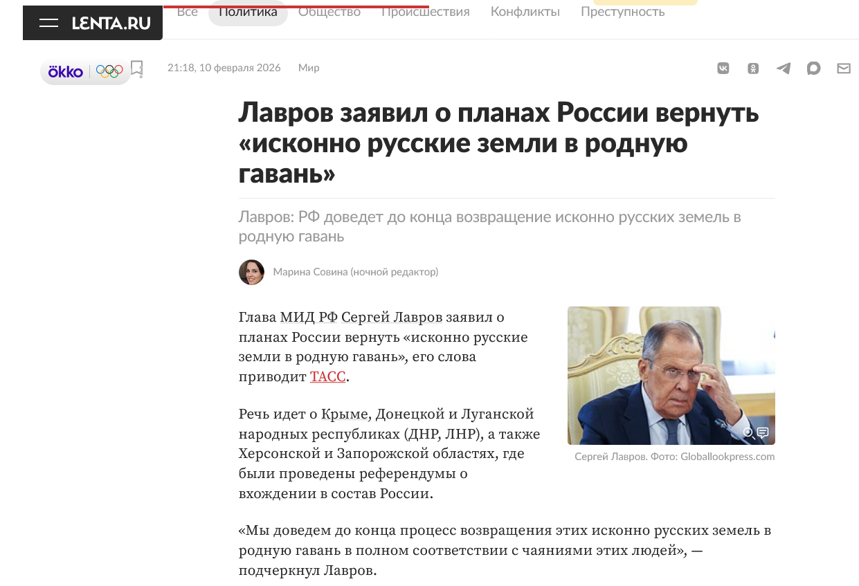 Screenshot 2026-02-10 at 20-23-57 Лавров заявил о планах России вернуть «исконно русские земли в родную гавань» Политика Мир Lenta.ru.png