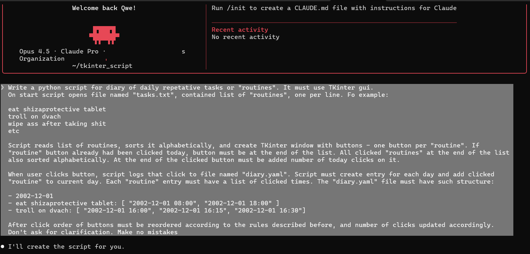 Вообще мне кажется с таким справится ща попробуем #!/usr/bin/env python3 """ Daily Routine Tracker - A Tkinter GUI application for tracking daily repetitive tasks. """