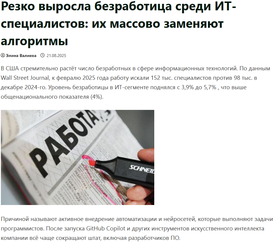 >>330255963 (OP) Он не прав в том, что как и любой гуманитарий переоценивает роль технологий и в частности ИИ. Любому технарю очевидно, что ИИ это бесполезный пузырь, который ничего не умеет. Гуманитарии думают, что это какая-то магия, какое-то волшебство, которое изменит всё, но первые модели персептрона это 60-е годы 20 века, ничего нового и современного в этом нет. Кто не верит: открывай divu.online и смотри, там этих книг по искусственному интеллекту тонны ещё со времен совка. И что? И где что-то поменялось?