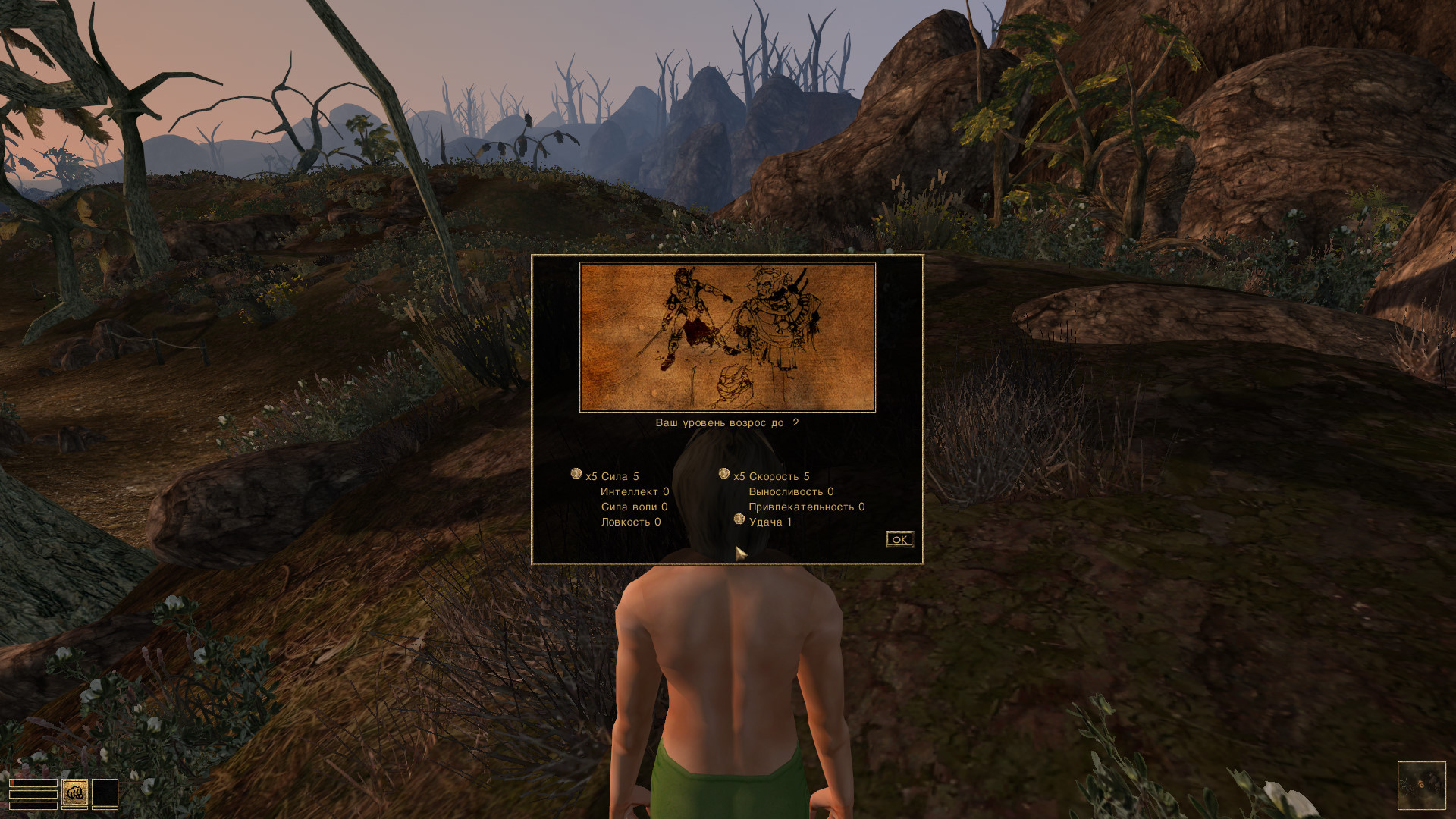 Я создал бомжика консолью со всеми статами и навыками 0, удалил экипировку, расовые обилки и заклы, кроме закла босмеров он не удаляется, но я его не буду трогать. Сложность 100. И сейчас буду аутировать. Цель - прокачаться до 21 лвл, получить 50 репутации и спасти Морровинд от Дагот Ура. Пожелайте удачи в бою.