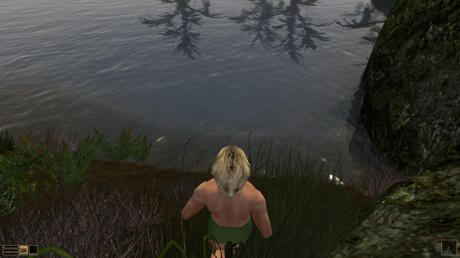 Я спиздил деньги с трупа, убежав в море от крысы, но меня чуть рыба не загрызла. У меня кстати ебанутая хардкорная сборка, одна из фич что цены на транспорт в РАЗЫ дороже. Я иду в Кальдеру чтоб купить там кольцо невидимости, можно будет воровать даэдрические артефакты и лут у сильных нпс из-под носа. Но меня в ГМ не берут, я хотел воспользоваться телепортом в Кальдеру, слишком лоховской маг с меня говорят.