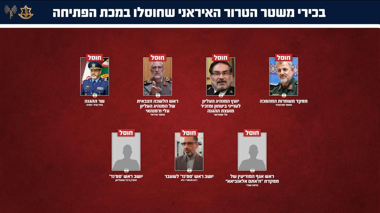 • Израильская военно-морская база в Хайфе • Военные корабли стояли на якоре в Хайфе • Авиабаза Рамат Давид • Министерство войны режима в районе Хакирья • Военно-промышленное поселение Бейт-Шемеш • Военно-промышленный центр «Исдуд»