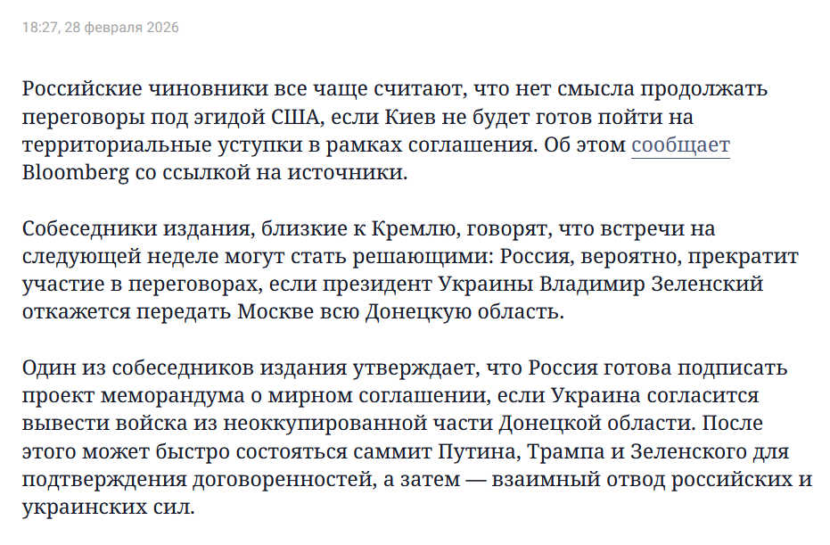 Одного непонятно почему зетники так упорно лицемерят если ситуация с переговорами это один в один как в 2022 когда с хохлами пытались так же договориться при этом готовились к войне