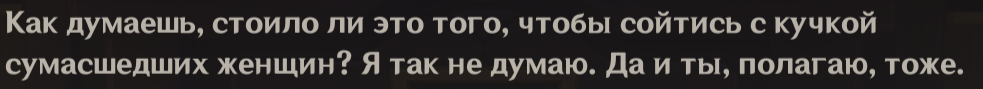 Этот театр непроходим. Что может быть дебильнее сочетания электро + крио + анемо, для кого это, для чего? Моно крио, моно электро пачки? Это когда такое играло последний раз? Семь лет назад? Везде вода нужна и воды дают два персонажа всего, ну спасибо! В аркане опять эта дрисня с таймером так еще и мобы спавнятся на разных углах арены, Вареса прыгает куда угодно, но не туда, куда тебе нужно. И сверху еще папилами полируют, которых немощная Часка в жизни не убьет без С2Р1. Че-то видимо эндгейм геншина для меня заканчивается, не вижу никакого смысла жопу рвать ради этих кокблоков ебаных.