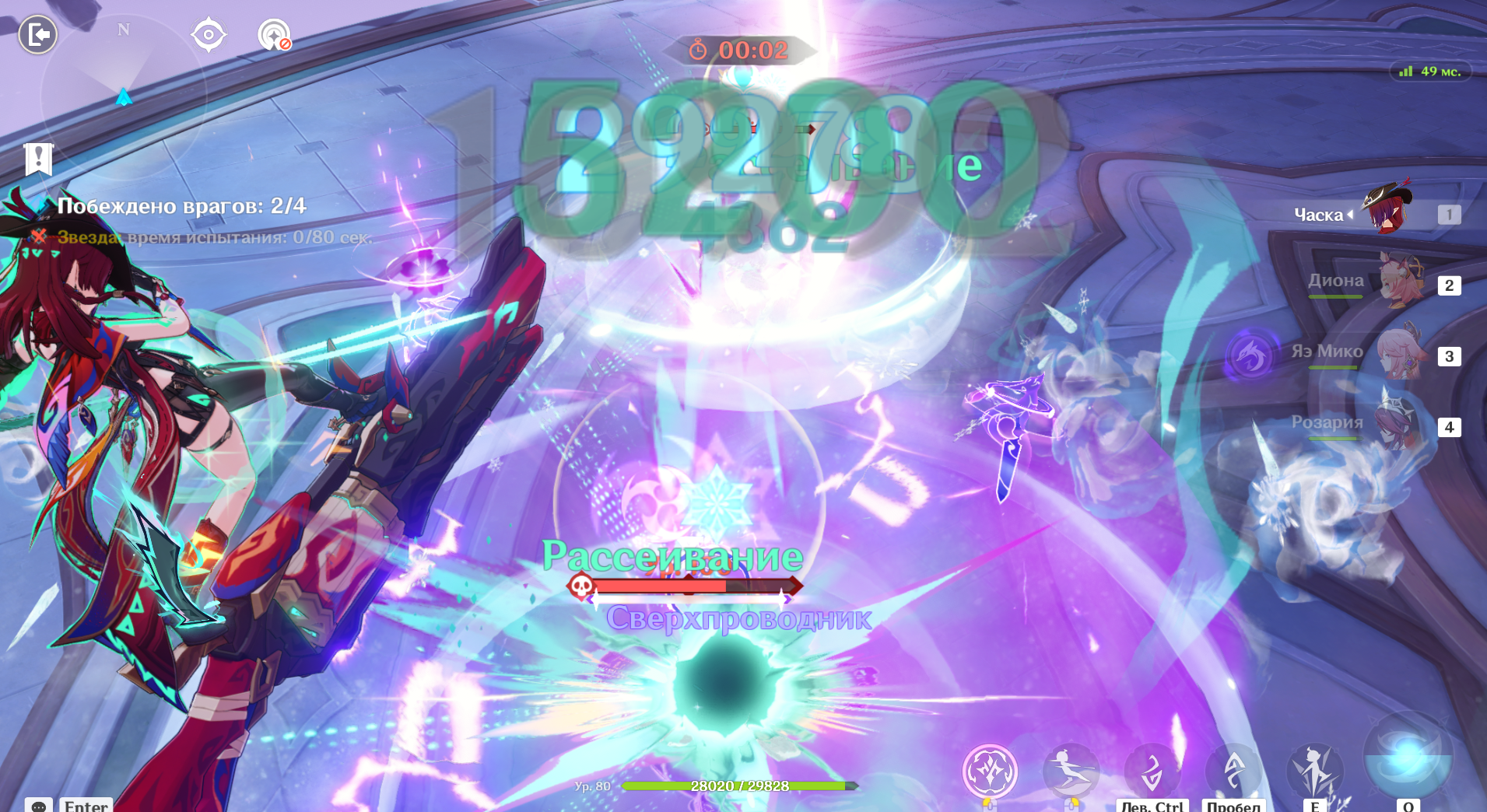 Пришлось переигрывать заново, в первый раз вроде все ок, но на последнего босса остался всякий бездамажный кэл - Клоринда, Коза, Дыня, даже под баффами не затищили, вообще никак, так что пришлось наматываться заново. В какой-то степени повезло, что на 7 выпал подкрученный бой не с гадскими кокблочными собаками, а с чурлами, прикольный файт вернувший дух старой бездны, когда один шаман ставит дендро стенки, другой анемо вихри, а пиро лучники расстреливают издалека.