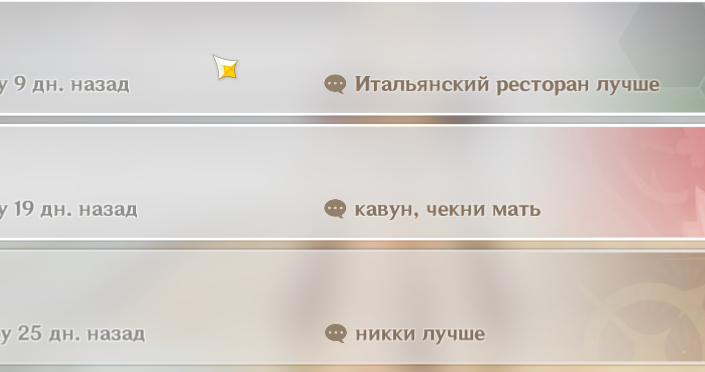 Еще один мультиконстосигнолер отвалился с френдлиста. Доколе Ляо будет это терпеть? Неужели геншин стал в край такое говно нетерпимое? И кстати что за гача итальянский ресторан? Тянке базовой ниже никки нравится, это я знаю, там жопами в акопах трясут, а ресторан эт че?
