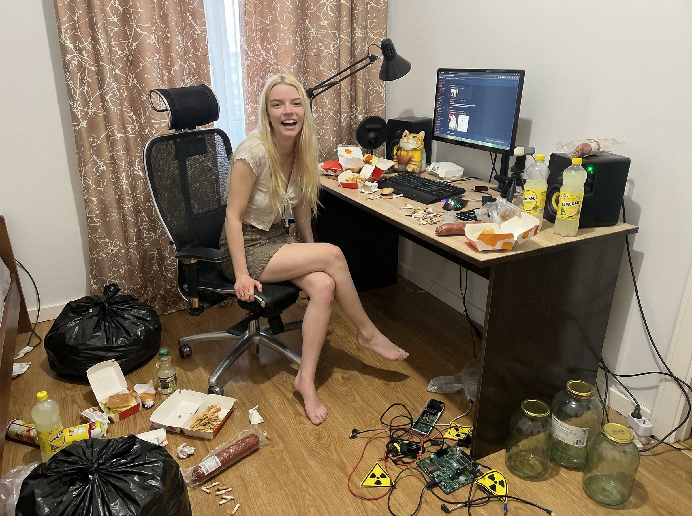 >>330317435 да засирает сама если пишешь просто что мусор. но тут конкретику прописал Вокруг хлам, старые радиодетали, трехлитровые банки, упаковки от фастфуда, целофанки от сосисок, мятые бутылки и банки, старые видеокарты, аудиокассеты, компакт диски, жесткие диски, рулоны туалетной бумаги, банки тушенки, упаковки круп и макарон, открытые дошираки, на стенах постеры с нло, комната потерта и обжита обои засалены и пожелтели. но бывает просто пишешь мусор хлам добаляешь пару уточнений и он рандомит просто беря из вселенной так было с банками радиоактивными >>330321051 мгагага..плохо чтоли? хорошо...