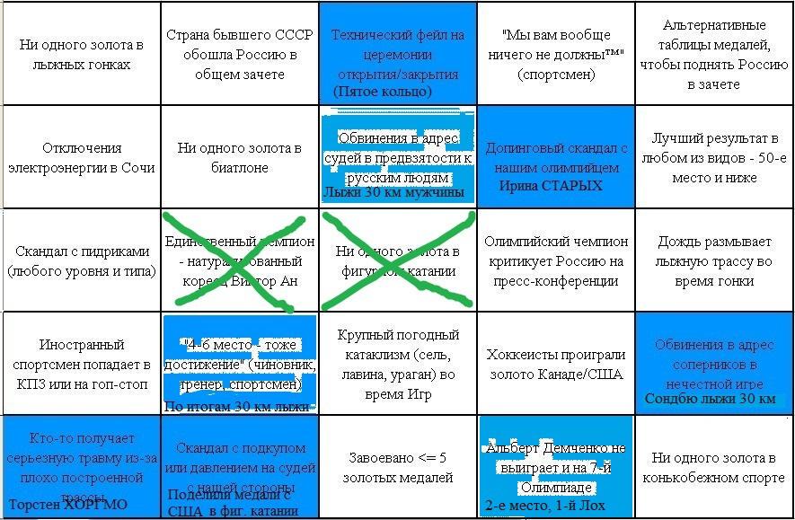 Таблица Олимпийского Бинго: