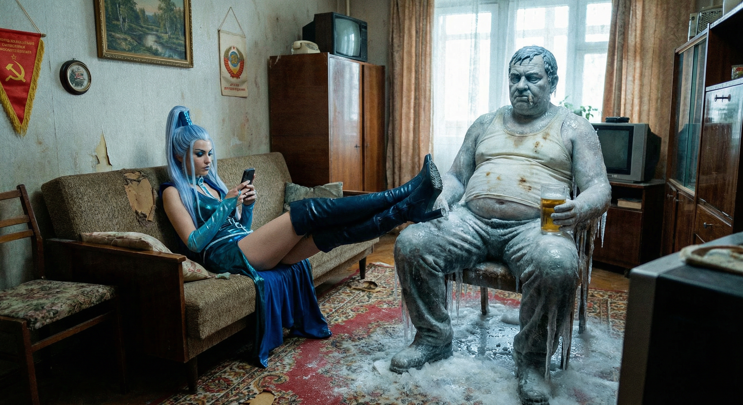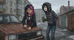 Почему они у тебя в каком-то говне ковыряются? Они должны дома сидеть, лол. И Лену проебываешь. Она даже с ирокезом должна быть женственной, в этом и прикол. А она у тебя всратая спесивая бучиха какая-то.