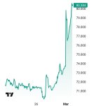 Нефть Brent улетает ваше 80 долларов. Растет на 9%.