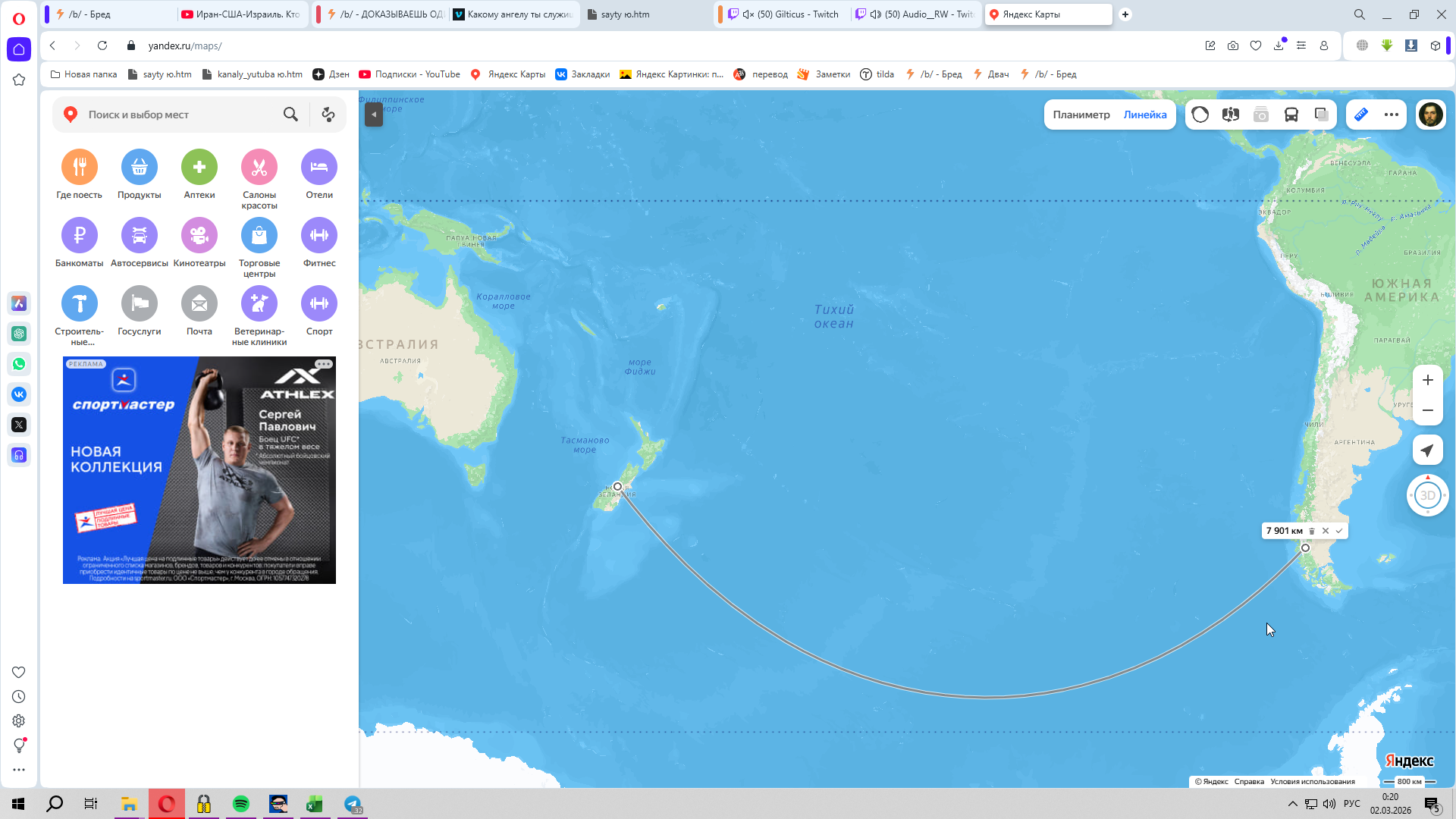 Смотри, существует авиаперелт из Сиднея в Сантьяго, https://www.flightpaths.com/SYD-SCL вот здесь вот можно посмотреть его маршрут на глобусе.