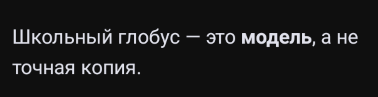 Школьный глобус — это модель, а не точная копия. На нем суша и вода обозначены краской.