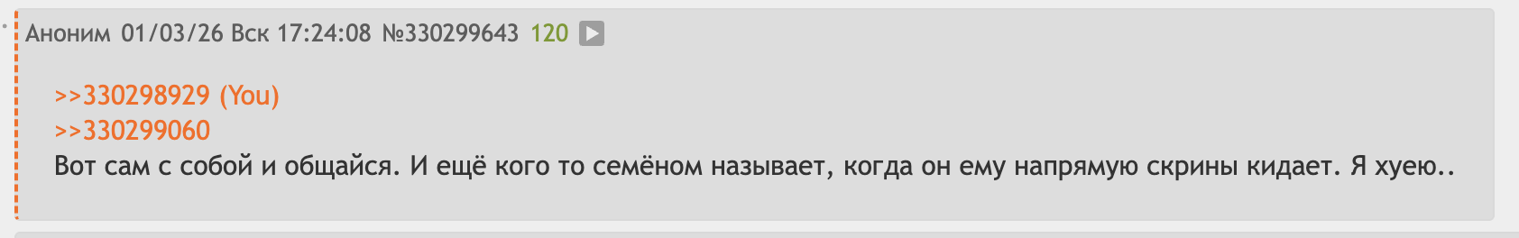 >>330298929 Потому что сралик не может смириться что он спиздил все рецепты блюд но не научился готовить, потому что насосал на старость но как человек не состоялся, как повар не состоялся, остался говночуркой. Его бесит что никто его не ставит в хуй