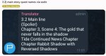 Как говорится каждому своё. Я своё мнение высказал. Мне важно чтоб был смысл в том что высирает автор опиздохуительного сюжета/фансервиса и чтоб качество писанины было лучше кала от нейросети, неважно к кому это направлено, к ГГ или к междусобойчикам. Я конечно прикола прям дохуя серьезного селф инсерта в ГГ тоже не понимаю, хули, но ладно, как говорится каждому свое [2] и каждый воспринимает как ему больше интересно и как больше заходит, главное не быть шизлом.