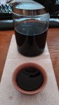 На 100мл я кладу 5-6г. Выходит, что при проливах я имею результирующую граммовку 700мл/6г = 0.85г на сотку. И время условного настоя - 7х17с (грубо усредненно) = эти 0.85г на сотку "настаиваиваются" суммарно в течение 2 мин максимум. И овщит, там бывает и практически нефть. И аромат на полкомнаты ебашит...