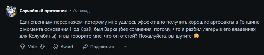 Вот вы жалуетесь на ноуконтент, а в Китае сотрудник Михойо умер от переутомления на китайский новый год. Ляо предложил его родителям компенсацию в 30 тысяч юаней (300к рублей), но история завирусилась и теперь Ляо будет выплачивать больше, чтобы на Михойо не подали в суд. Так что проходя квест Варки, помните, что он был написан кровью неизвестного китайца.