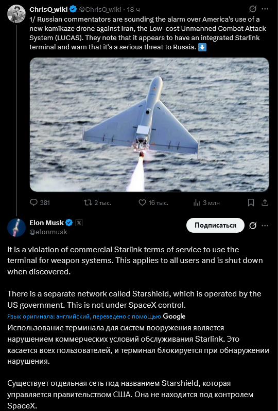 >>62012146 Просто не уточняет что старшилд работает на базе спутников старлинк по договору аренды части оборудования через субподряды и прочую попильную военную хуйню.
