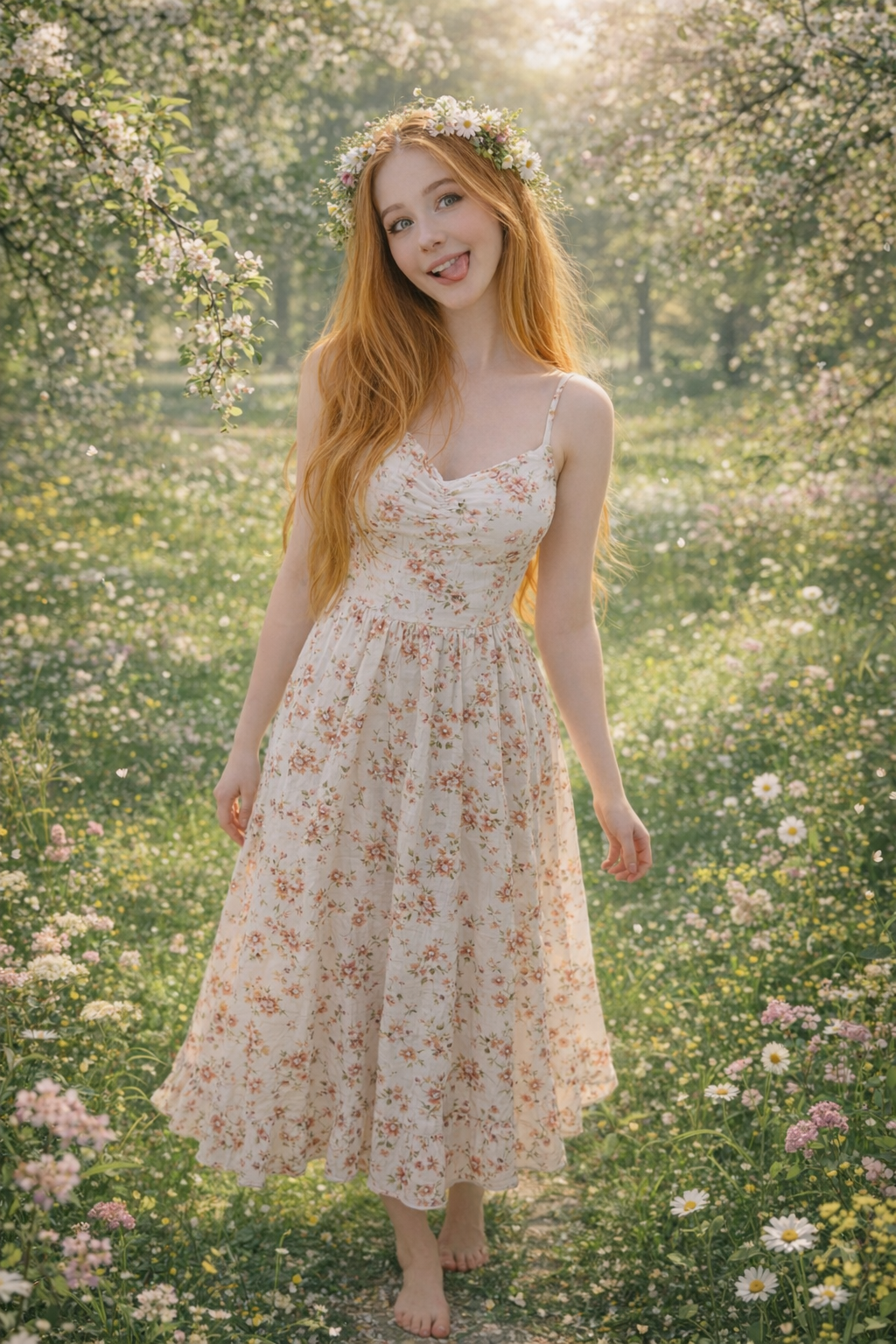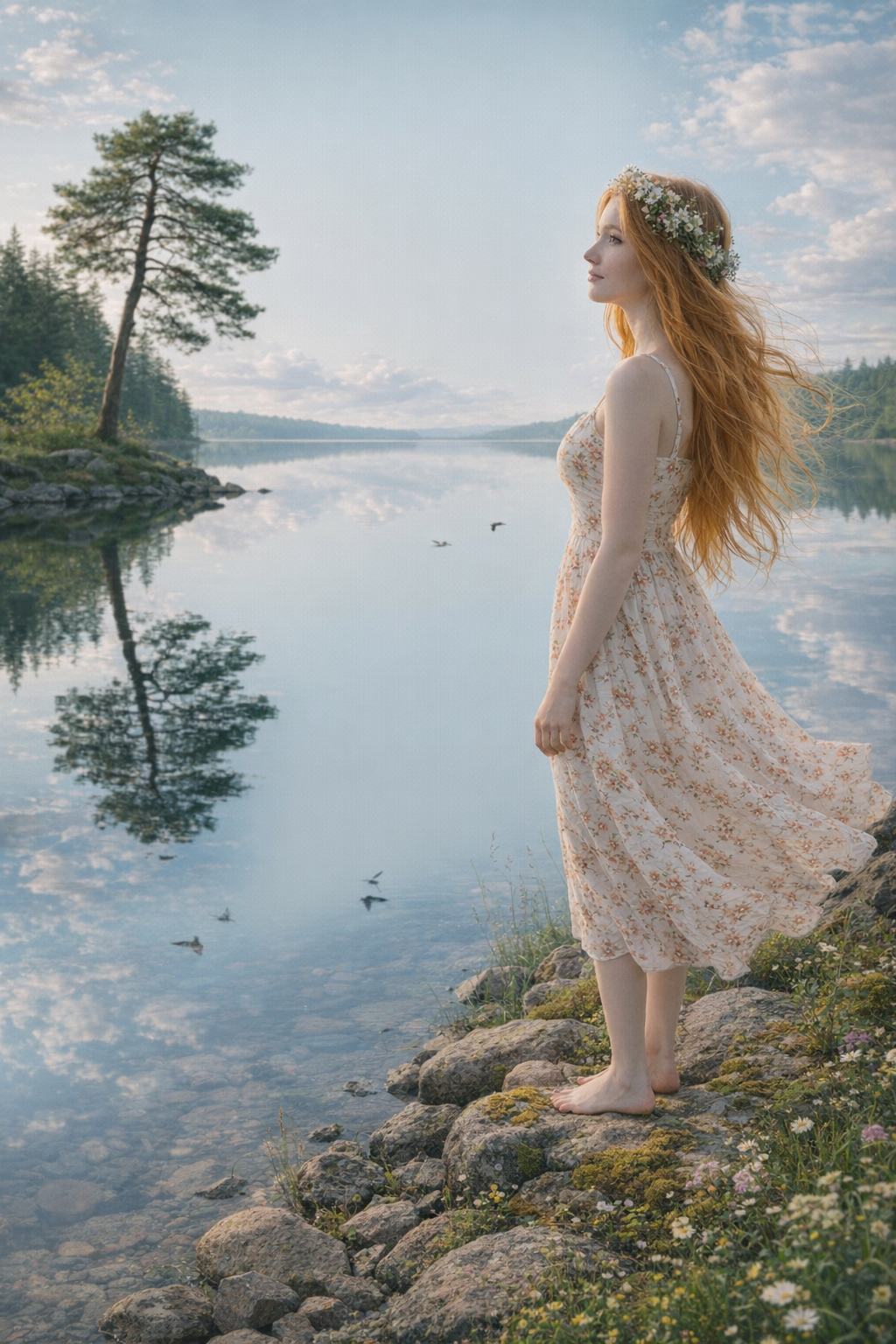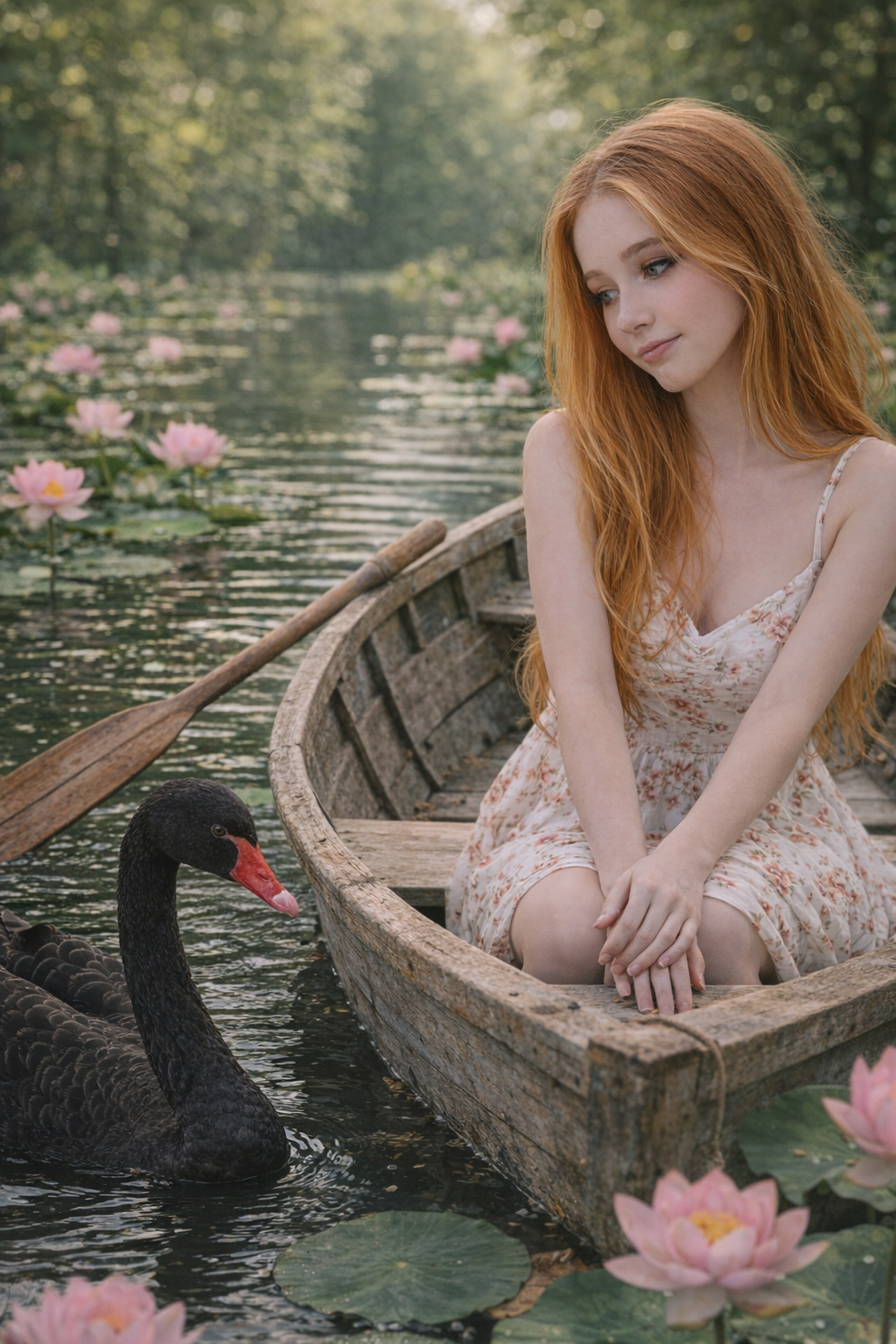 Прмпт: Натуралистичная (живая) фотография, созданная на основе эталонного изображения, где мужчина заменен молодой, красивой, элегантной, стройной женщиной с женской прической. Она одета в женский наряд. Фотография в полный рост. Она сохраняет то же выражение лица и позу, что и на оригинальной фотографии. Фон и освещение соответствуют оригинальной фотографии. Присутствуют реалистичная зернистость пленки и детализированные текстуры.