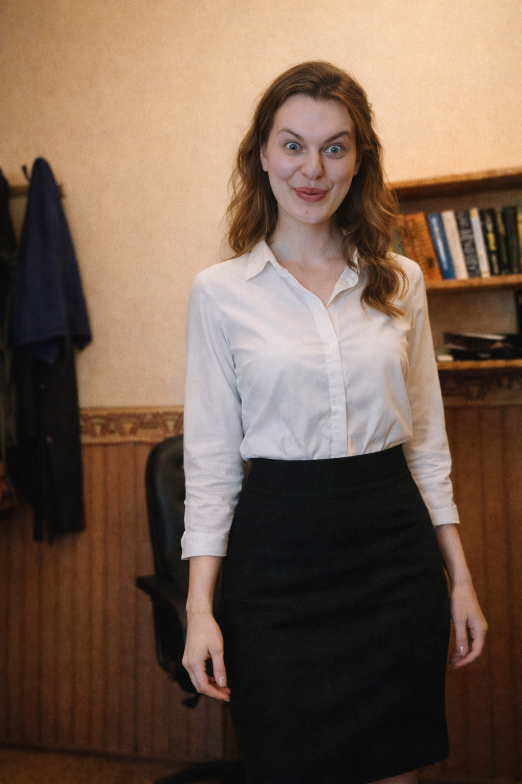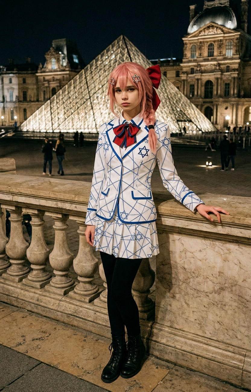 >>330349138 A naturalistic (live) photograph based on a reference image, where the man is replaced with a beautiful woman two ponytails on the head . She is wearing an women outfit. The photo is full-length. She maintains the same pose and facial expression as in the original photograph. The background and lighting are original. Realistic film grain and detailed textures are featured. Make a pale skin. можно ещё Make a long bangs covering half the face