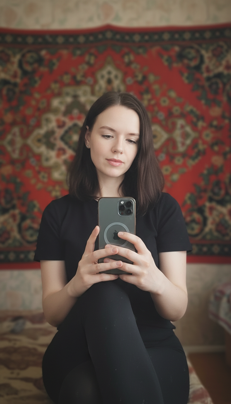 Фотореалистичная смена пола: превращение человека в женщину, как если бы он родился с женскими половыми признаками. Сохранение той же этнической принадлежности, строения костей, пропорций лица, тона кожи, цвета глаз, формы носа, губ и линии подбородка, адаптированных к женской анатомии. Едва заметные женственные черты лица, естественная мягкая текстура кожи с небольшими естественными несовершенствами, реалистичная линия роста волос. Без макияжа или с минимальным естественным макияжем. Без нарочитой женственности, без эффекта пластической хирургии. Реалистичное освещение, естественные тени, высокая детализация, фотография с зеркального фотоаппарата, объектив 85 мм, малая глубина резкости.