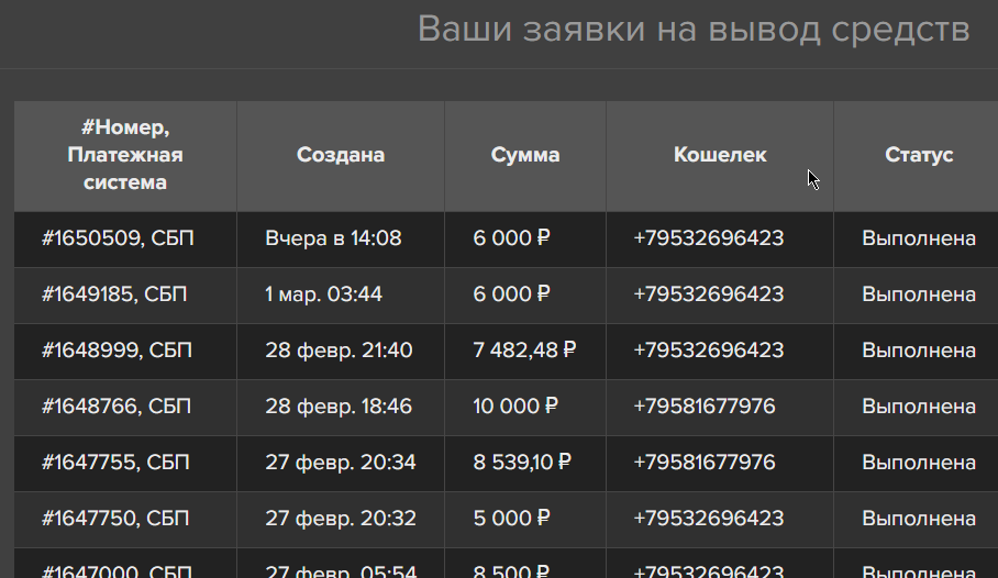 Список паст: