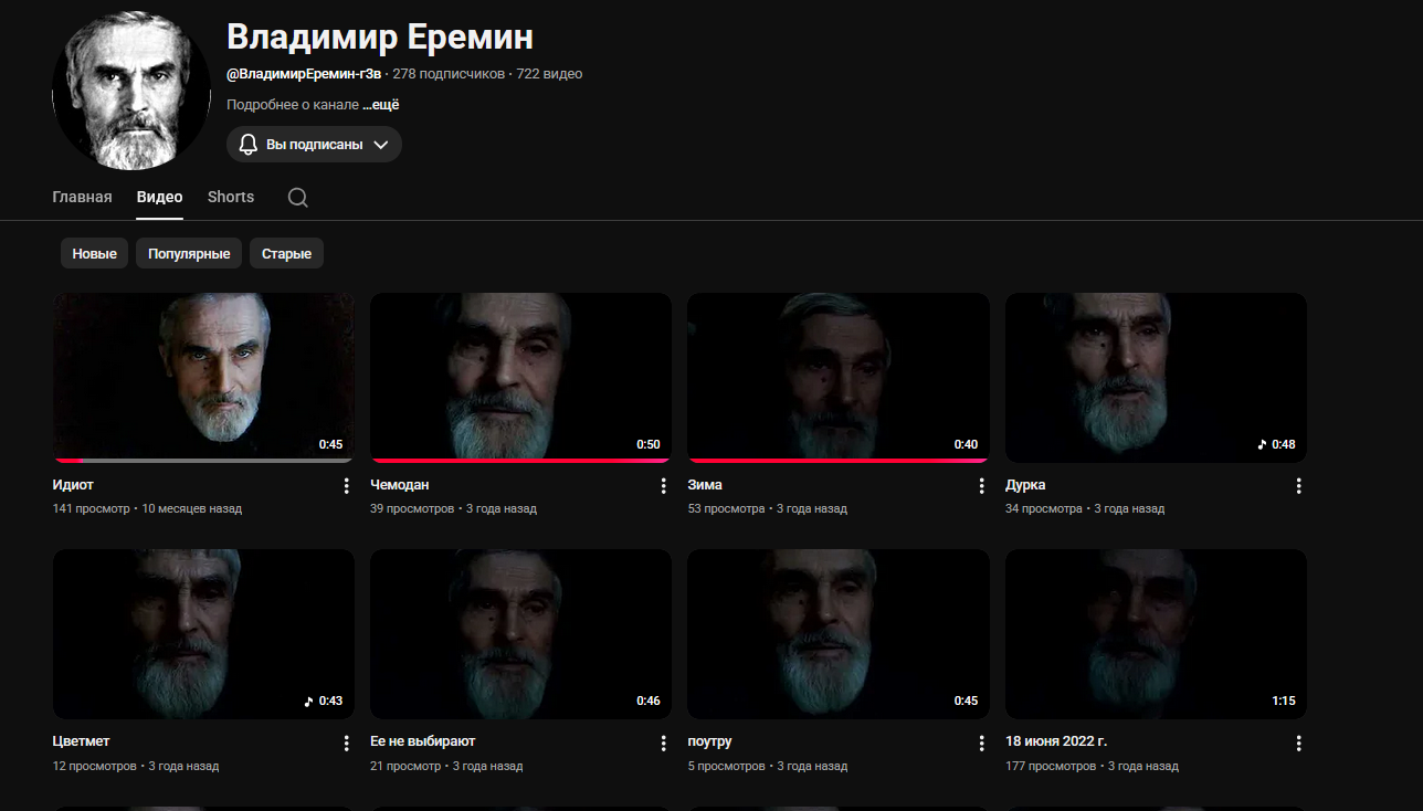 >>330357488 >>330357386 Не, нихуя не нашёл. Но там дед был такой альфач с красивой седой бородой. Снимал стихи по 30-60 секунд на тёмном фоне где было видно лишь лицо. И гораздо более давно это было чем 2-3 года назад. Лет 5-6 назад его тут запостили. Реквестирую этого деда