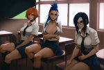 Нужен вариант с майкой и трусиками вместо бикини и с закрытым синим купальником. А то всё пиздато, но вот белье выбивается из образа, как мне кажется.