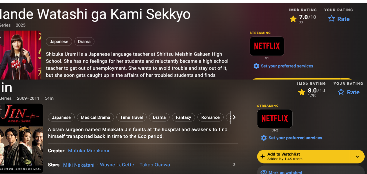 Тебе указали, что 95 % настоящих японских сериалов и близко не про провалы во времени и прочую фантастику.