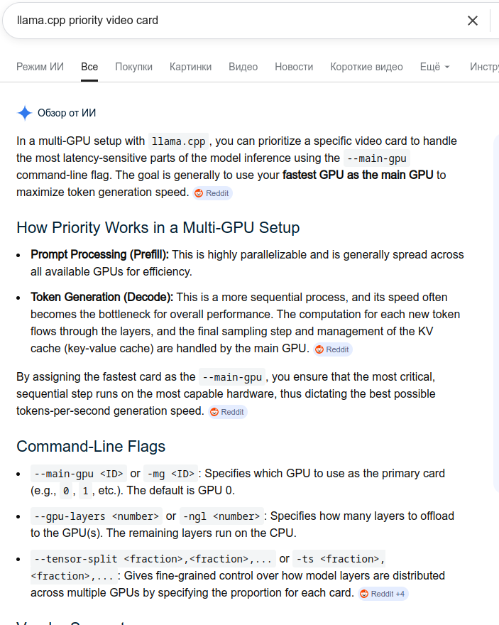 • Выгрузка избранных тензоров, позволяет ускорить генерацию при недостатке VRAM: https://www.reddit.com/r/LocalLLaMA/comments/1ki7tg7