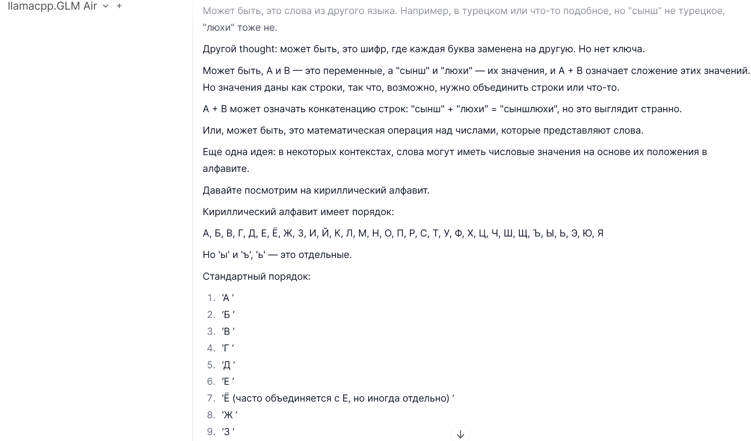 >>1538258 вот это - не описание проблемы в том виде, в каком ее необходимо описывать. Почему? Потому что содержательная часть недостаточна, чтобы дать тебе решение. Это может быть конец контекста, это может быть сломанный шаблон, eos/bos токены, вариантов наберется немало.