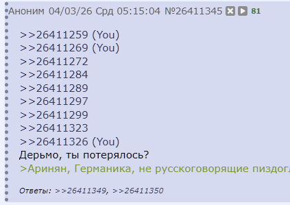 ❗️ Дежурного, несущего караул в лос треде 04.03.26 в 5 утра по мск и допустившего набег "чемодановских" привлечь к ответсвенности и отдать под трибунал