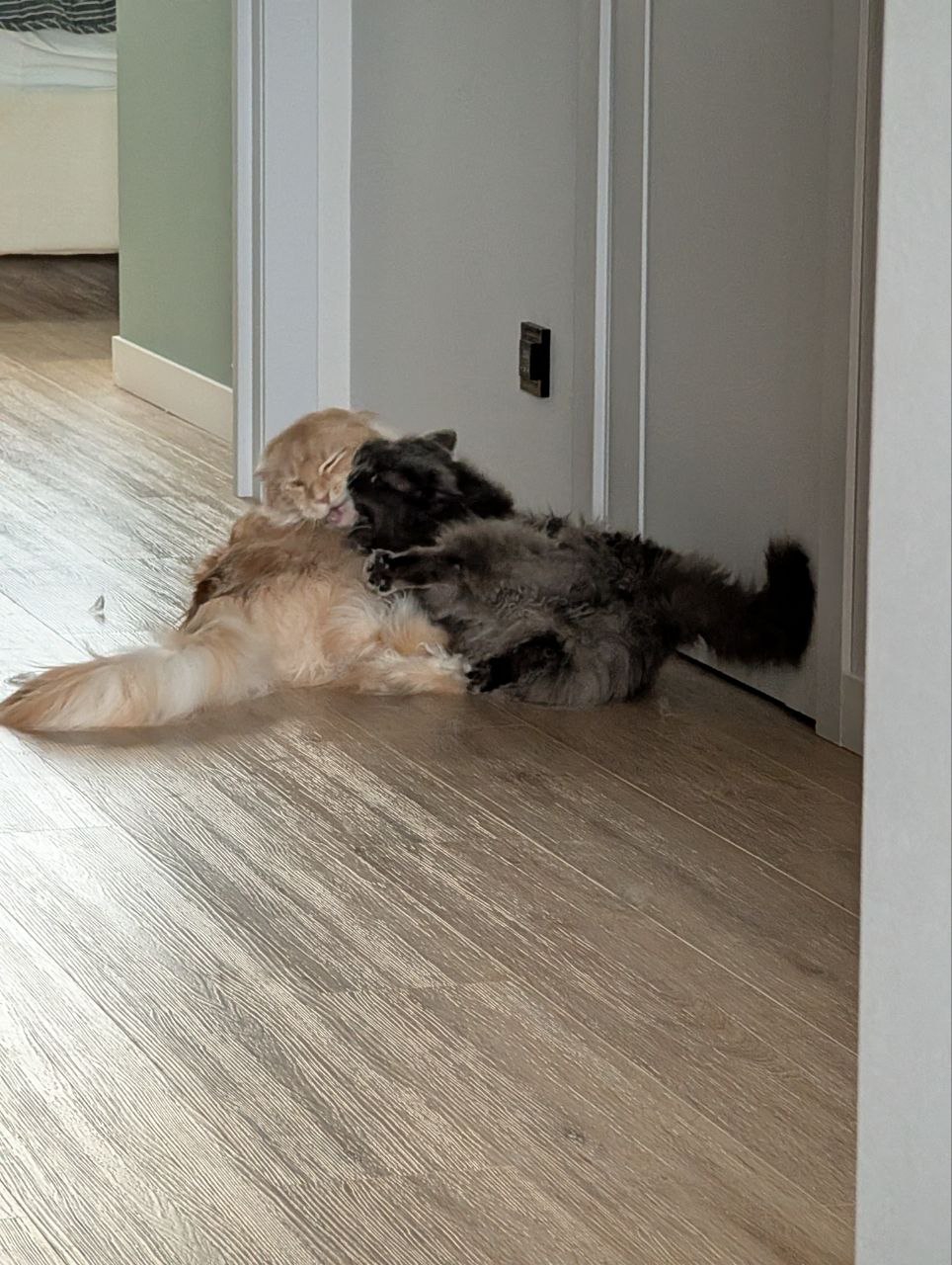 Кайфовые, жмакать и гладить. Дай им время, может притрутся друг к другу. Мб идиллии и не будет между ними, но хотя бы хуярить друг друга перестанут. Котеки они же как люди, все разные и индивидуальные: спокойные и буйные, адекватные и с ебанцой и так далее. В общем, желаю чтобы уладилось все и держу кулачки за вас. Бобра.
