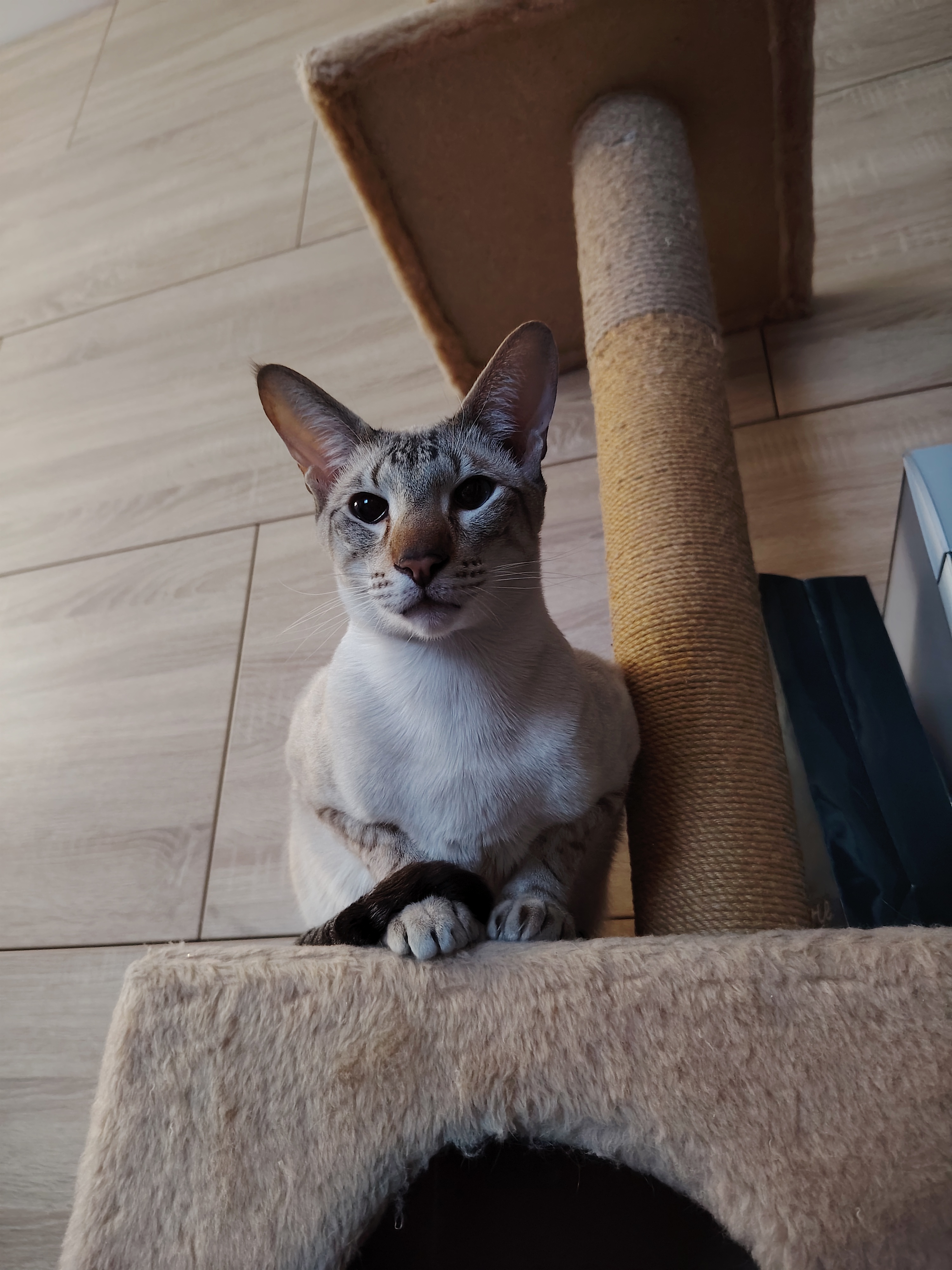 Это фото с балкона. Там в углу лежат детали от машины накрытые старым ковром. Она всегда забирается на этот ковер и сидит на нем,больше никуда не ходит