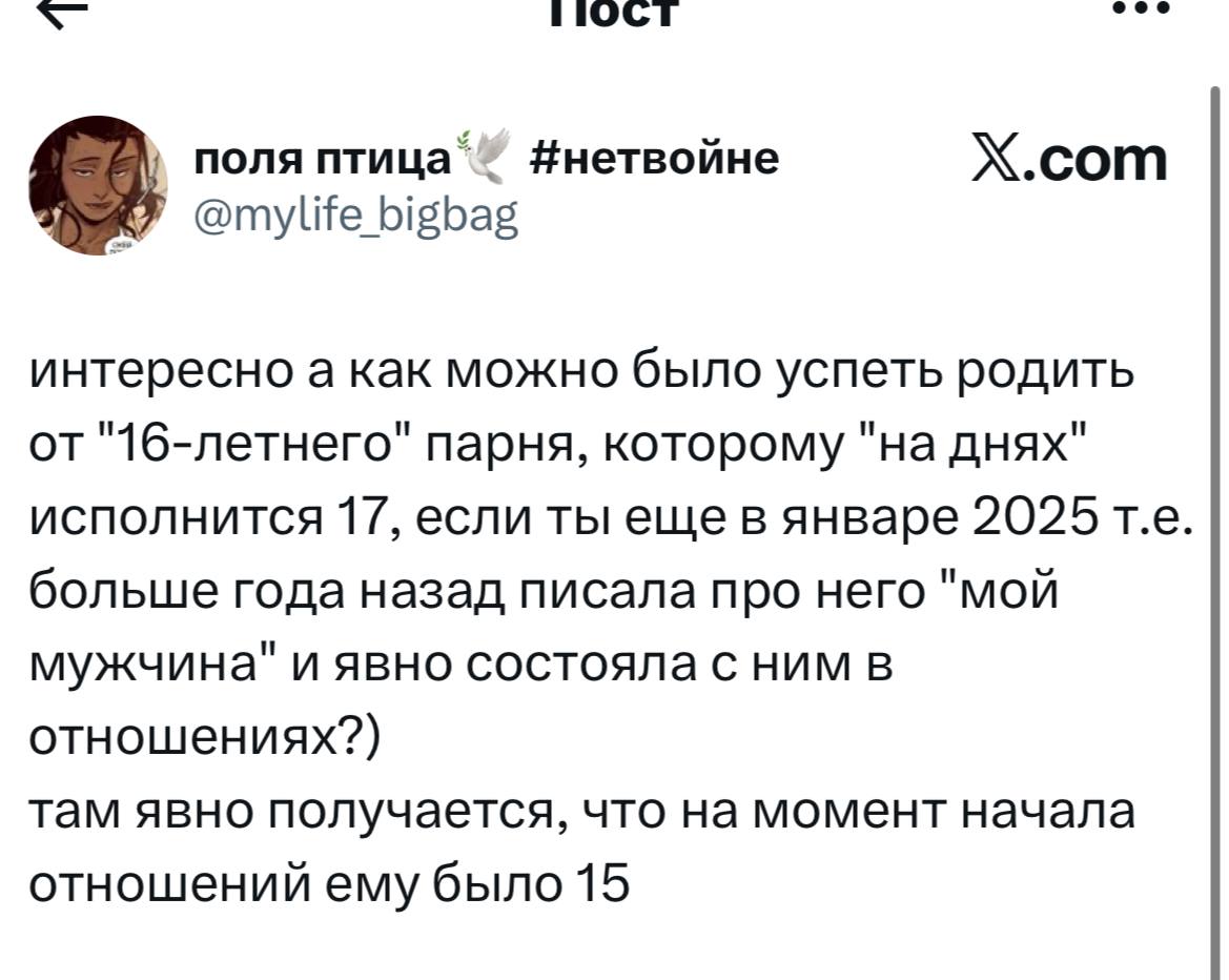 В твиттере вой про еблю той 29лвл альтушки и ее 16лвл кунчика, их сюда носили, пока повсеместно скуфы ебут девочек подростков и всем похуй, да тот же продюсер-скуф, который отношаться начал с тянкой, когда она еще несовершеннолетней была и всем похуй опять же, не обсуждают так как этот кейс