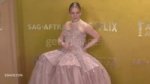 Русалка мб, вроде на первом фото у нее хорошая фигура, но всех не худых пышные платья превращают в бабу на самовар. Второе я вообще не понимаю, может это фото такое, но у нее сиськи перетекающие в талию, неужели швеи не видели.