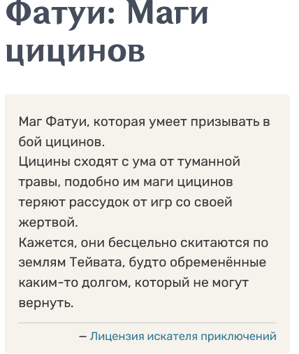 ✦ Базы данных по игре https://gi.hakush.in (мертво) ∙ https://genshin.honeyhunterworld.com/ ∙ https://homdgcat.wiki (мертво) ∙ https://ambr.top/