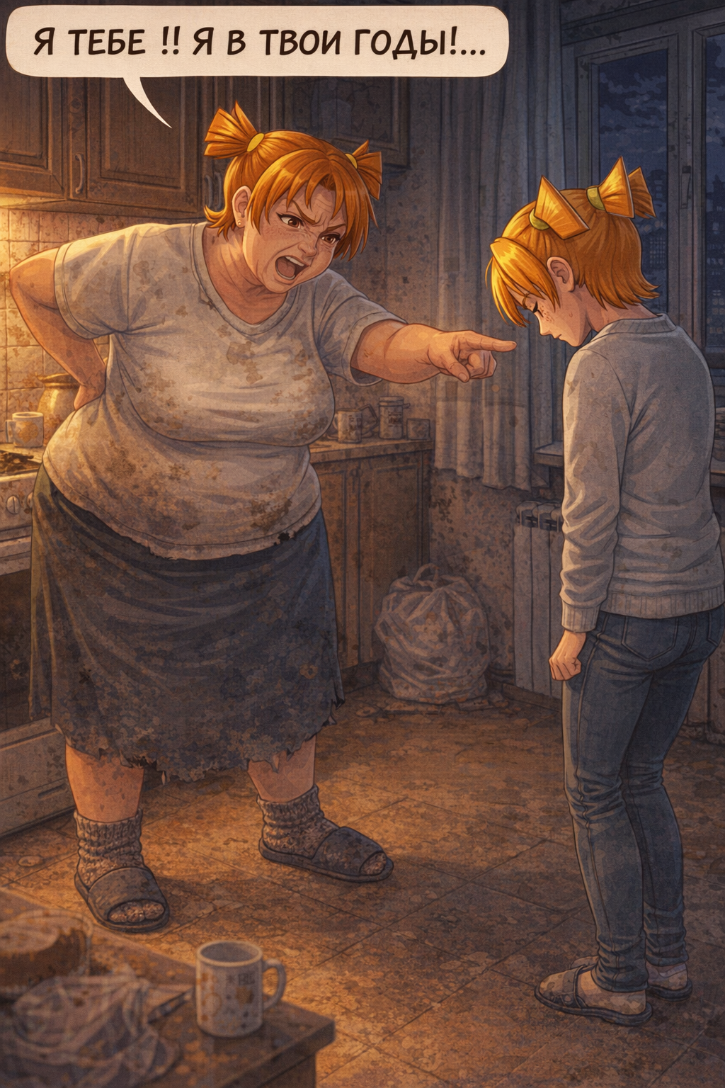 %бабанейм% сидит на кухне с тупым еблом, сзади пакетик с молоком домик в деревне, мастерпис, 8к