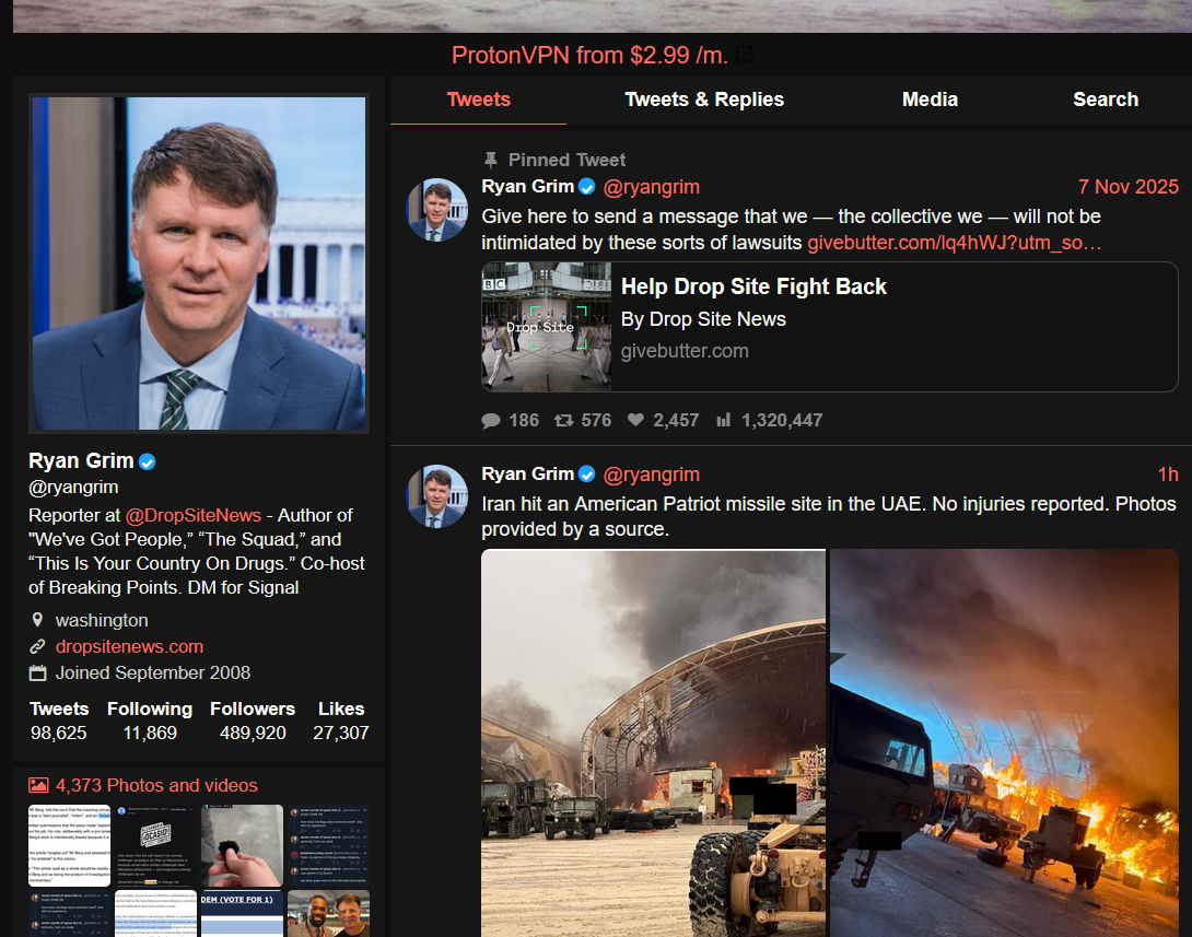 Поймите это! Предположительно, это крупнейшая в мире военная держава, обладающая самыми большими в мире воздушными возможностями, и в течение 4 дней, когда США перешли в наступление, предположительно и предположительно, прорвав иранскую оборону, мы не видим никаких признаков американского господства в иранском небе. Где все видеозаписи полетов наших самолетов над Тегераном или любой другой частью Ирана, если уж на то пошло?