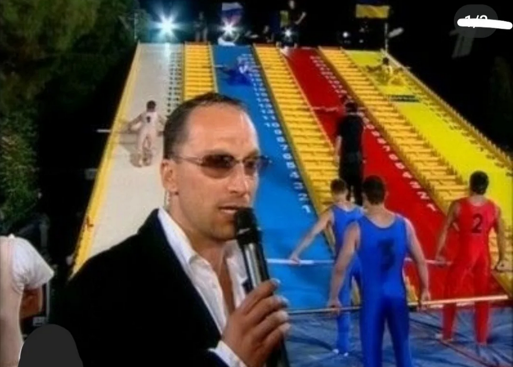 >>330505650 Большие гонки, это копипаста с какой француской телеигры, где команды двух деревень (провинций) соревнуются во всяком лазанье по шведским стенкам. Её кстати показывали по ТВ6