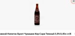 Темное пастеризованное «Портер». Состав: вода питьевая, солод пивоваренный ячменный (светлый, карамельный и жженый), сахар, хмель. 20%, 8%. Изготовитель: ООО «Частная пивоварня “Афанасий”». ГОСТ 31711. Объем: 500 мл, кеги. Срок годности: 360 суток в стеклянной бутылке. Штриховой код: 4610017684474;
