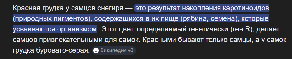 Блин сейчас такой красный снегирь на ветки сидел, прям сильно красный буто в краске извалялся. А вы знали что это только у мальчиков такая грудка красная, они ягодки кушают и у них там это вещество усваится пигмент типа что бы девушек заманивать. Ребят, знали?