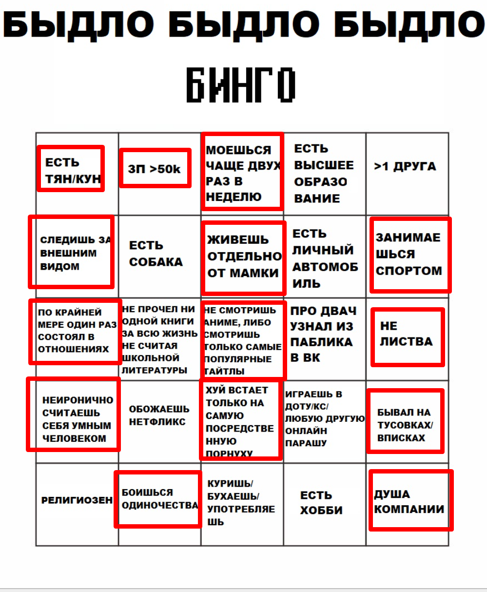 Эх, кабы не наличие хобби и полное равнодушие к аниме, было бы отрицательное бинго под всему полю нахуй!