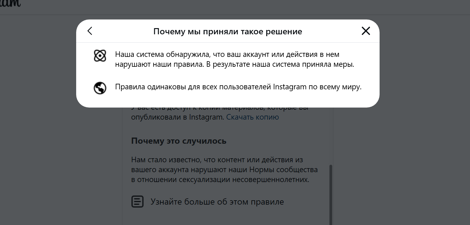 Зашел сегодня в инсту и обнаружил такую хуйню. Вопрос, КАКОГО ХУЯ СУКА, если я ничего не постил вообще, не писал несовершеннолетним/не писал комментов, разве что иногда лайкал баб в ленте, где могли попадаться шкальницы. Где тут блядь логика и какие тут могут быть действия сексуализации с моей стороны если эта хуета сама этот контент в ленту сует? Сука совсем бляди ебанулись со своей педошизой. Кто-нибудь из анонов сталкивался с таким? Можно вообще акк спасти? или важным перепискам пизда теперь