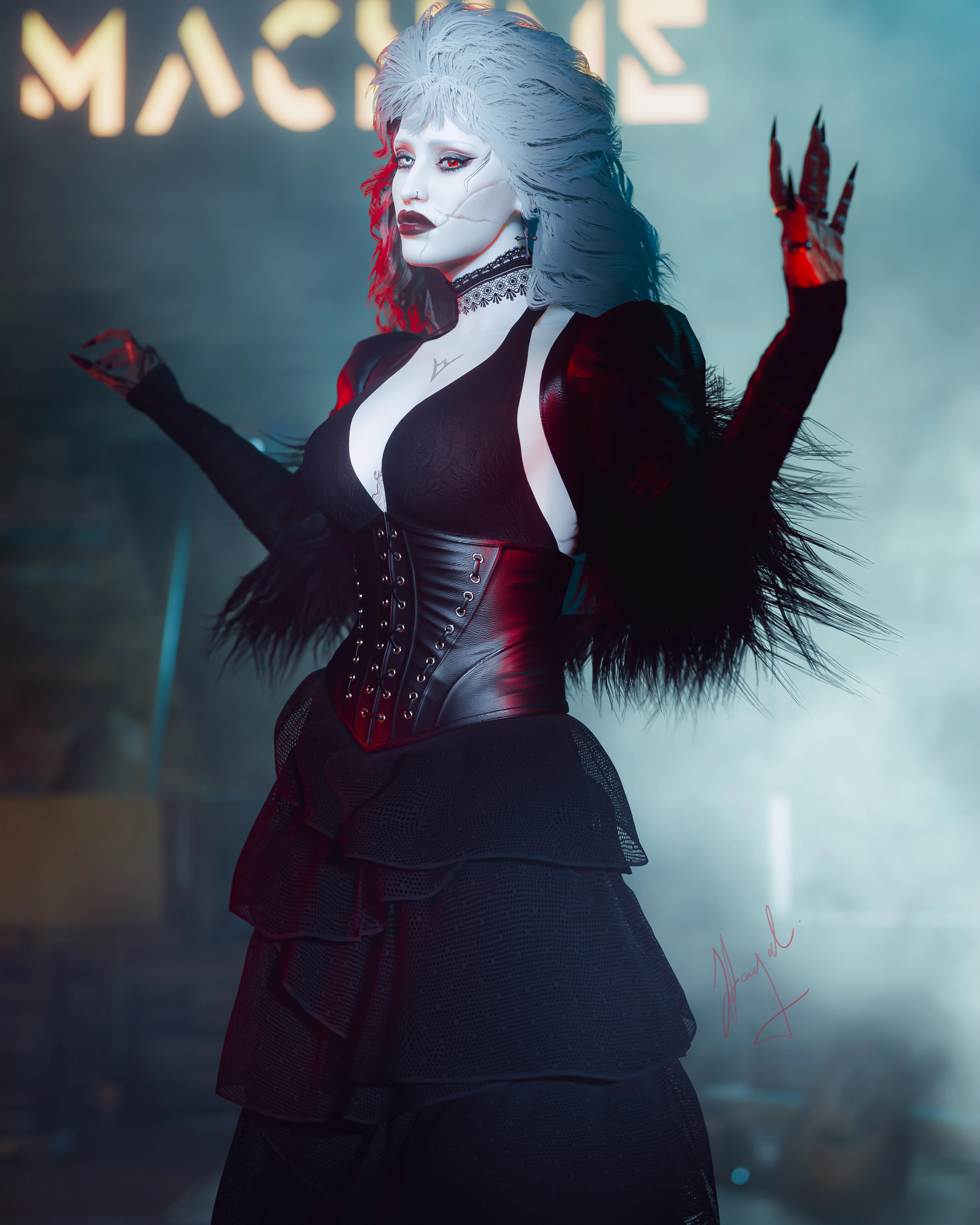 >While she's out barhopping in Night City, she runs into (and causes) enormous amounts of chaos, culminating in a wild fling with --get this--Adam Smasher, the cyborg.