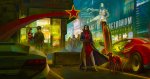 Ты траллируешь? Это буквально стиль оригинальной манги. Это возвращение к истокам. Оригинальный японский киберпанк именно таков. Это в Америке дрочили на серо-чёрную депрессуху по вечным дождём.