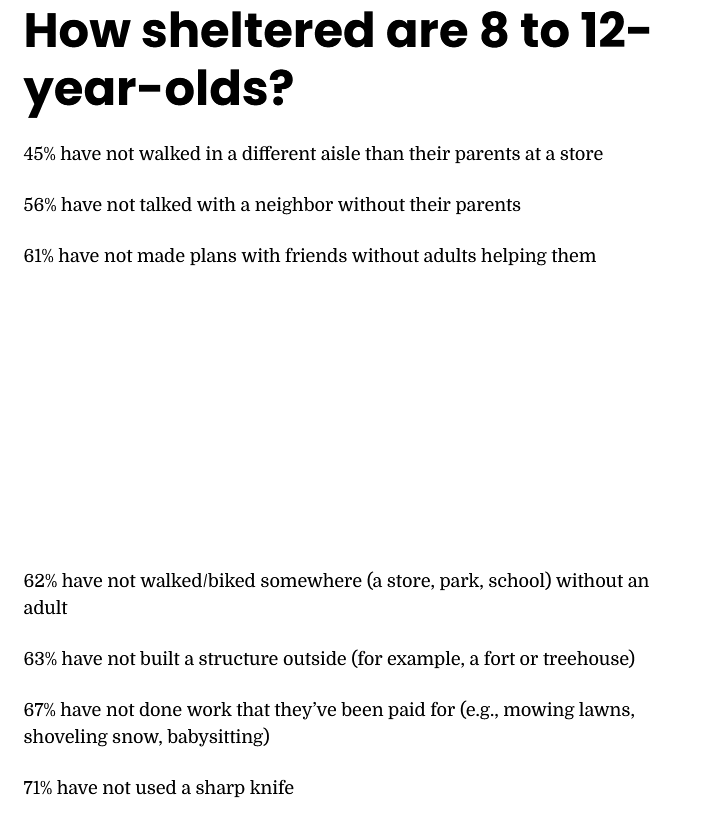 >Тамошние зумеры - самые счастливые люди на свете Американских детей в последние 10 лет гиперопекают, например не выпускают погулять без сопровождения. Их даже одних дома не оставляют - это банально на грани закона. Чет какое-то сомнительное счастье