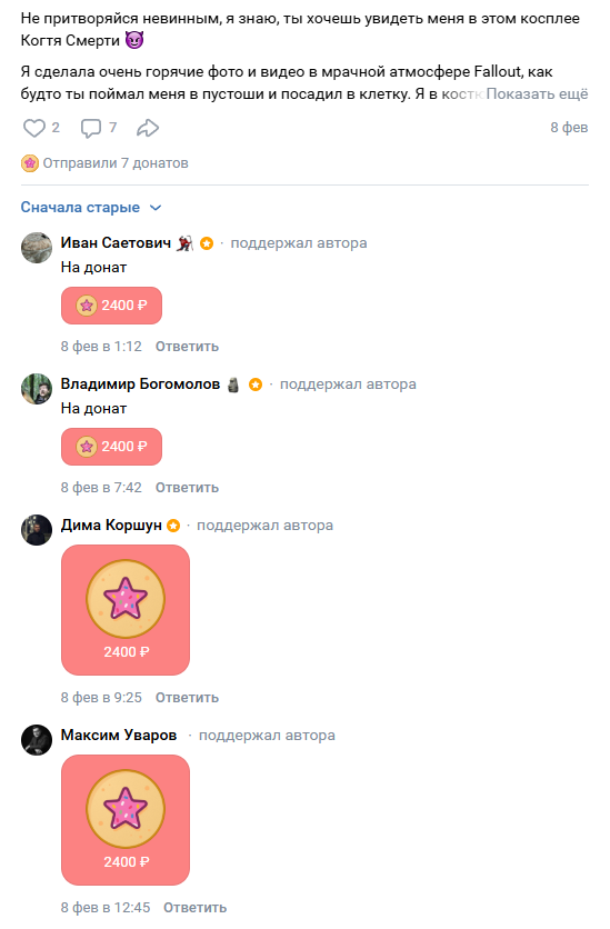Ну это Кристина Финк, олдушка. Она сама из себя бимбо унитаз сделала. Я не то чтобы симп, но мне по приколу ей закидывать 1200 рублей каждый месяц. Там в ВэКа и похуже симпы есть, без меня денежный поток формируется. Я просто смотрю в бездну и надеюсь она как БОГДАНОВ станет или как ИВЛЕЕВА, так и развлекаюсь.